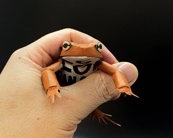 #Twitter文化祭2022 ジョージアカフェラテの空き箱に潜んでいたヒキガエルを、無事確保した!! ふぅ…ふぅ…手こずらせやがって! (ジョージアカフェラテの空き箱からヒキガエル作ったよ!! ハァ〜♡めちゃんこ良い感じ!) twitter.com/yamshis_works/…