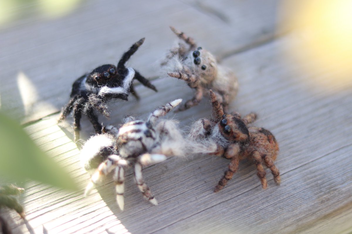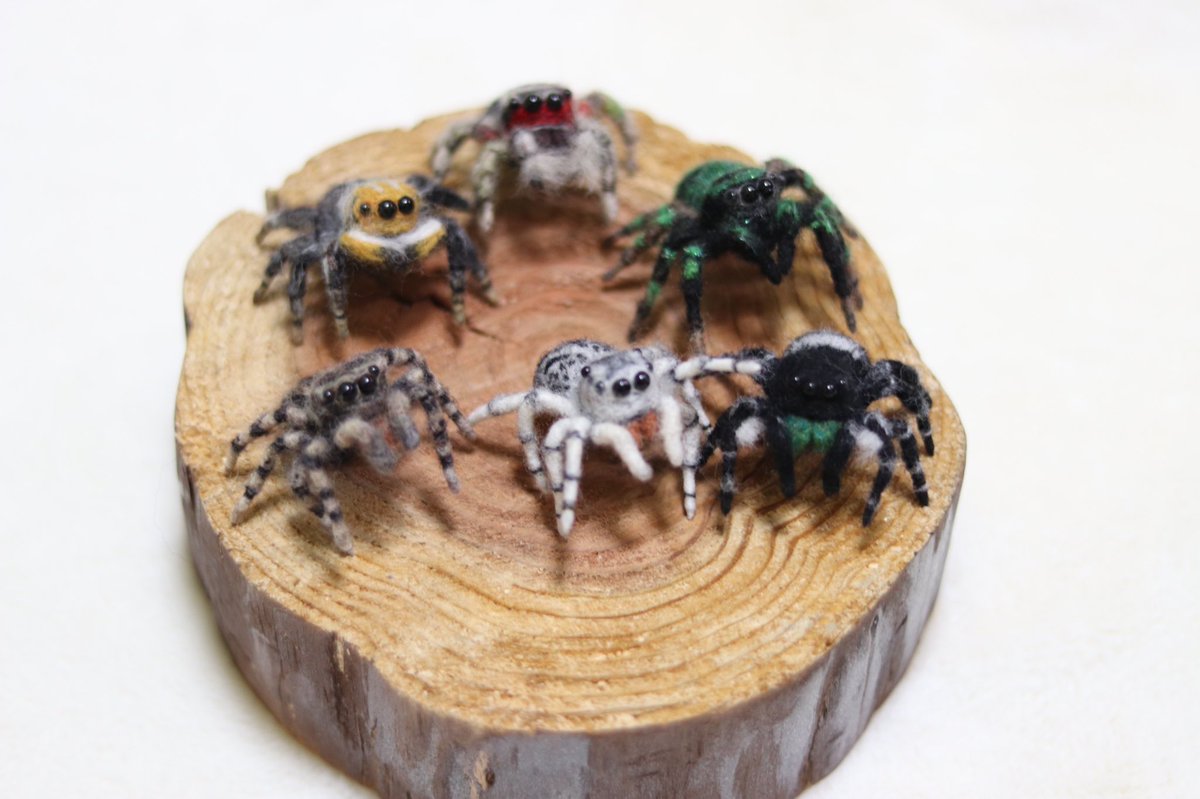 #Twitter文化祭2022 羊毛でクモばかり作ってる人。 基本的に実際にいるクモをモチーフにしてますが稀にオリジナル柄のクモも作ってます。実在するクモ国内と海外合わせて100種類近く作ったかなぁ?まだそこまでいかないかな。