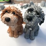 Meet gorgeous Gino the cockapoo 😍 his mum asked me to make him in miniature sitting on a pebble, what do you think of his tiny mini me? #MHHSBD #UKGiftAM #UKGiftHour #handmade #EtsySeller #petportraits #dogsoftwitter #polymerclay