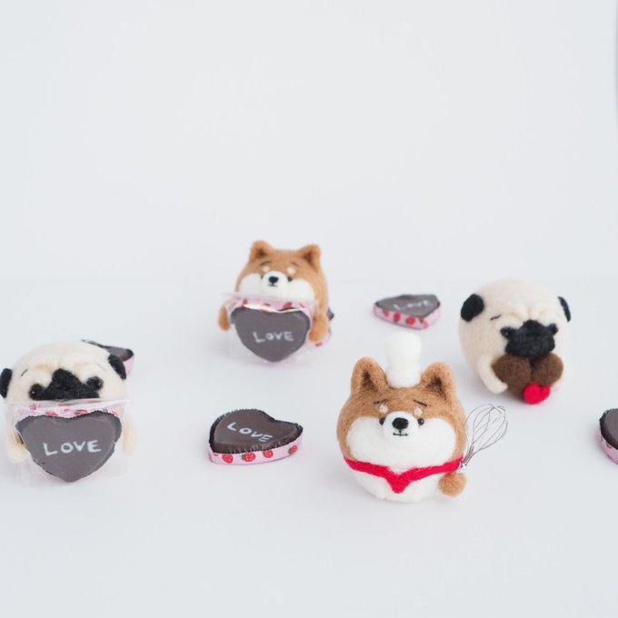 #HappyValentine 🍫💕 「みんなはチョコもらったのかな?あげたのかな?」 #ValentinesDay2022 #羊毛フェルト #柴犬 #パグ #チョコレート #犬好きさんと繋がりたい #ハンドメイド #ハンドメイド好きさんと繋がりたい #ショコラティエ