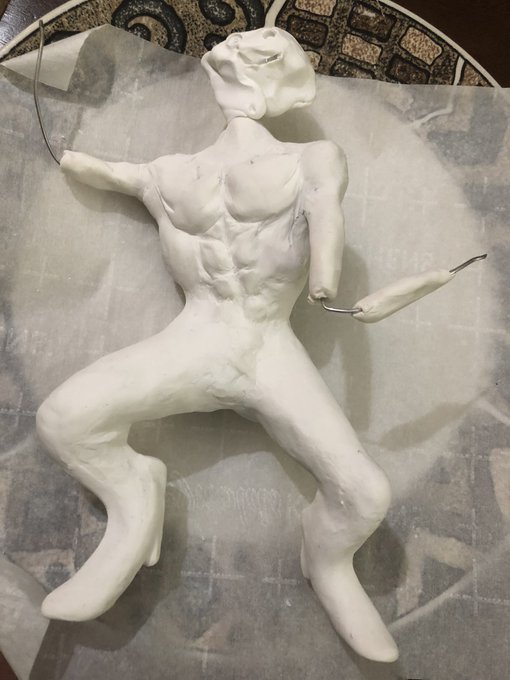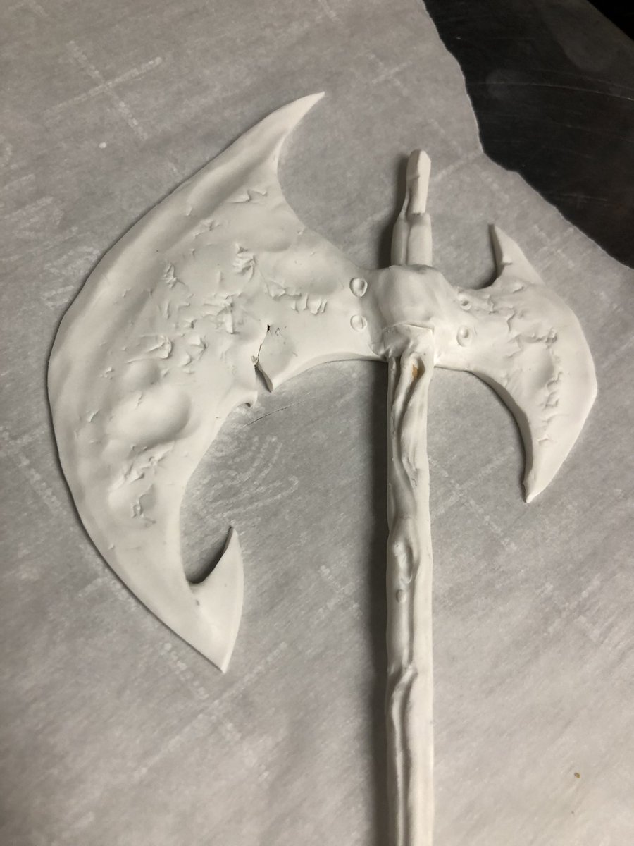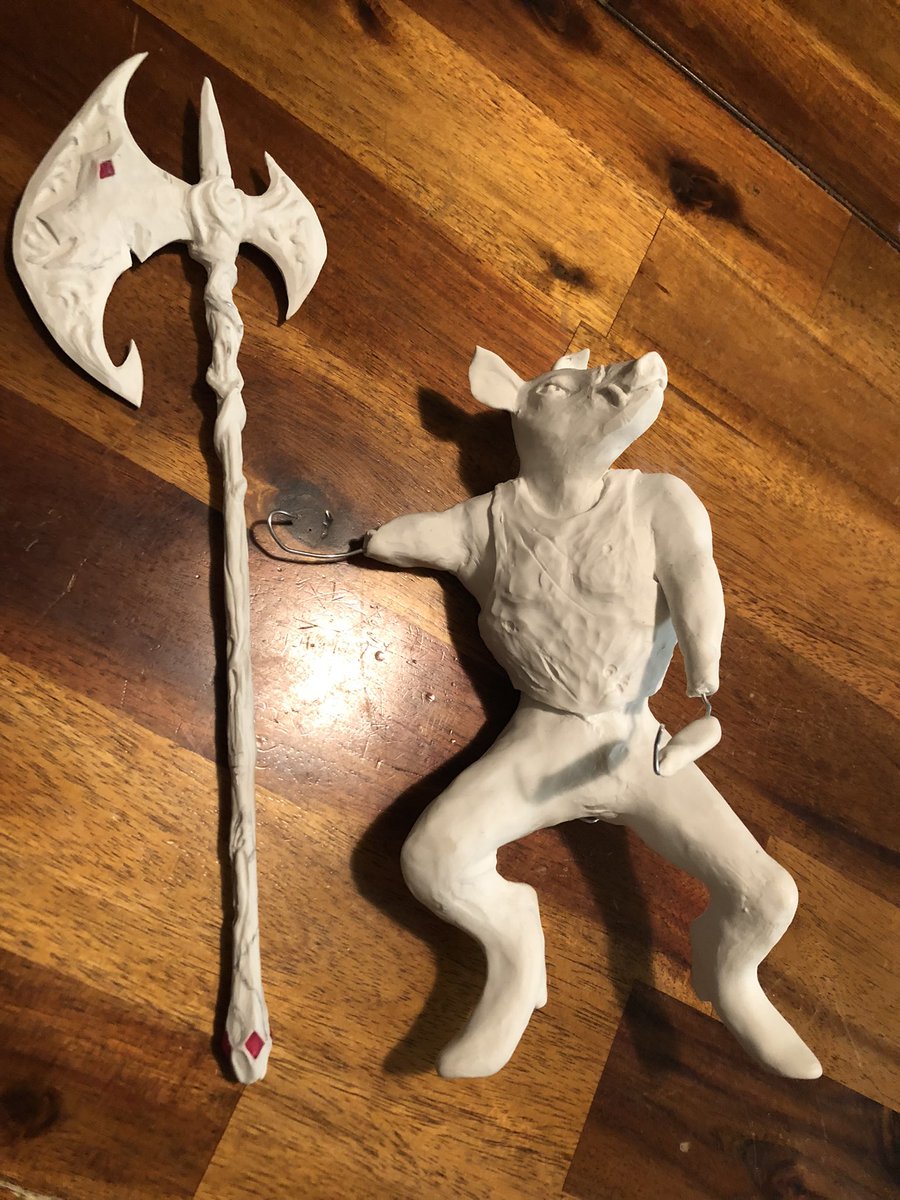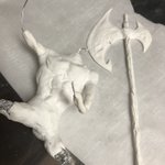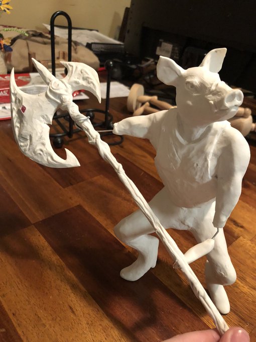 Art time! (*'▽'*) sculpture update! I’ve been working on the body and axe! Sculpting the face right now 🐷 #technobladefanart #technofanart #sculpture #wip #wipart