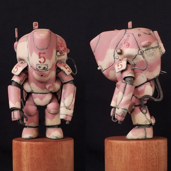 #マシーネンクリーガー #ひろがれマシーネンの輪 #maschinenkrieger #wave メルジーネ デザートピンク 完成 昨年 1/35 で制作したものは単色だったので、今回の1/20は2色迷彩で仕上げてみました。 過程をご覧になった方はご存じですが、3、4回塗り直しています。 いい感じに仕上がったので一安心。