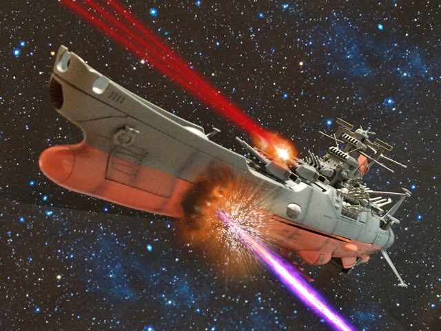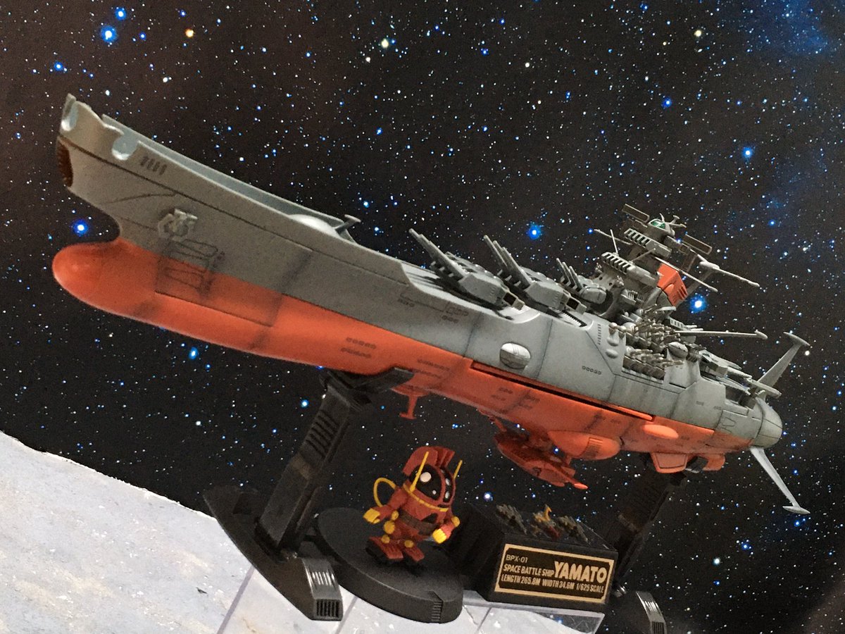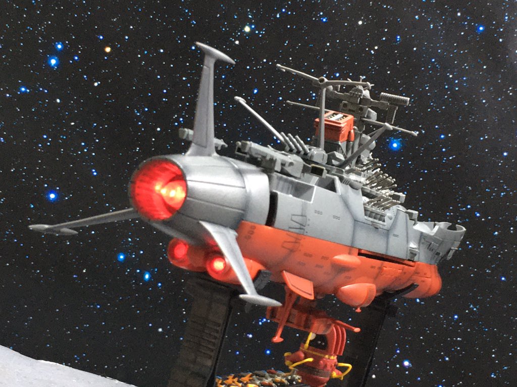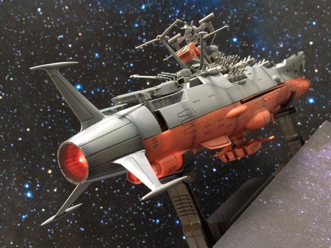 #今月作ったプラモ晒そうぜ 1/1000 超弩級宇宙戦艦ヤマト (メッキ)。 1/1000 クリピテラ級航宙駆逐艦 (メッキ)x2隻。 #yamato #yamato2199 #宇宙戦艦ヤマト #宇宙戦艦ヤマト2199 #プラモデル