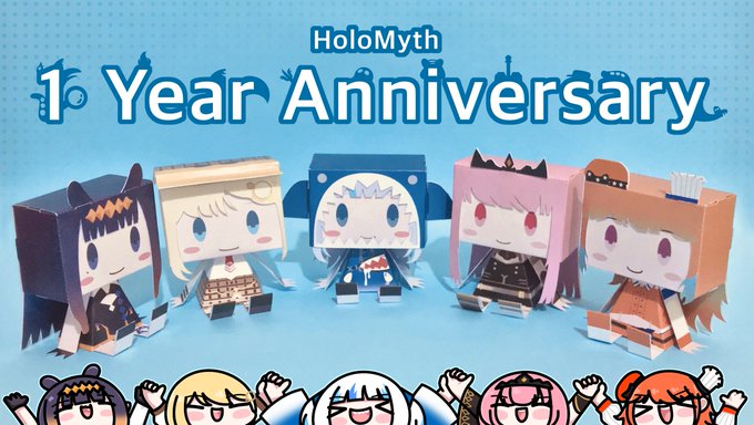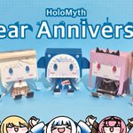 HoloMyth Happy 1 Year Anniversary(´,,•ω•,,) 💜💛💙❤️🧡 #inART #ameliaRT #gawrt #callillust #ArtsOfAshes
