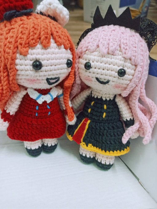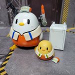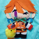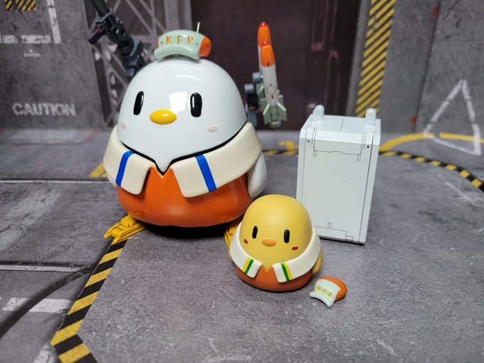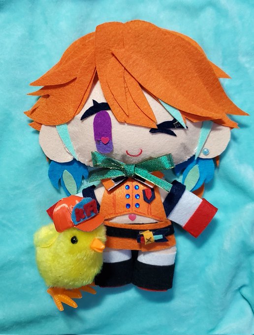My first handmade doll!!😭🧡 Tenchou and little employee🧡🧡 (the little chicken is a wind up toy, not made by me!!🤣) #kfp #ArtsOfAshes (?
