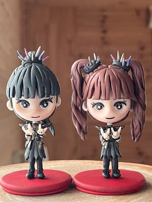 ハーフライス大森さん(@Halfrice_Oomori)イラストの赤べこすぅちゃん&チャグチャグ馬コもあちゃん やっとこ完成~赤べこと馬コはガチャガチャのヤツで それに合わせて小っちゃく作成したので顔を何度も色塗り失敗してめっちゃ苦労した(TT) #babymetal_fanart