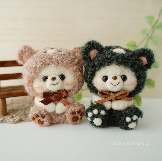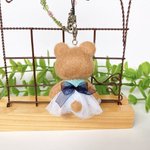 らぶりぃくまちゃん 茶色 ワンピース(水色×白) 羊毛フェルト ストラップ バッグチャーム|ハンドメイド、クリエイター作品のマーケットプレイス Creema creema.jp/item/14354929/… @Creema_jpより #creema #creemaで販売中 #クマ #くま #bear #羊毛フェルト #needlefelt