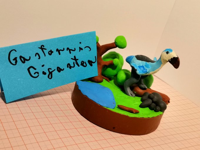 4 day of #dinocember so here's next dino, Gastornis! big blue birb (I think because birds are modern-dinosaurs, it is fair) #paleoart #clay #dinosaurs #birds