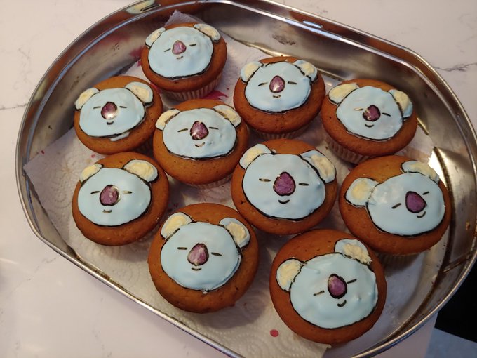 Koya cupcakes 💙 Ginger cake with buttercream and royal icing sleepy Koyas (I mean thinking Koyas!) #BTSARMY #KimNamjoon #bt21 #bt21koya #baking #cute #koya #방탄소년단 #cupcakes #btsfanart #btsxarmy #namjoon #namjoonie #김남준 #남준이형 #cutebakes #btscute #ARMY #royalicing