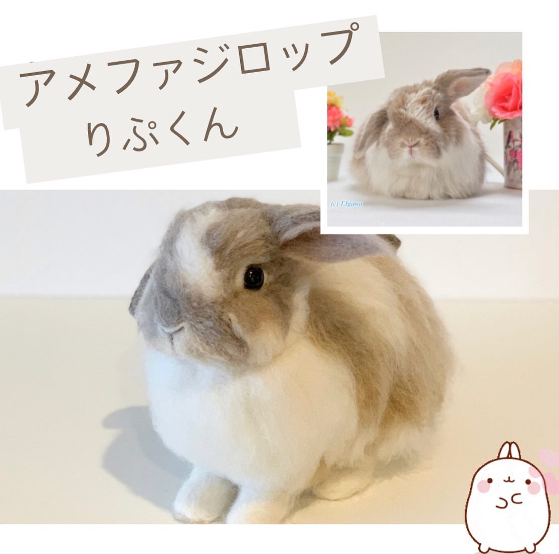 オーダー作品 Lサイズリラックスポーズ イヴちゃん、完成しました♪ #羊毛フェルト #うさぎ #ホーランドロップ #rabbit #bunny #needlefelting #一般社団法人日本うさぎ羊毛フェルト協会認定作家
