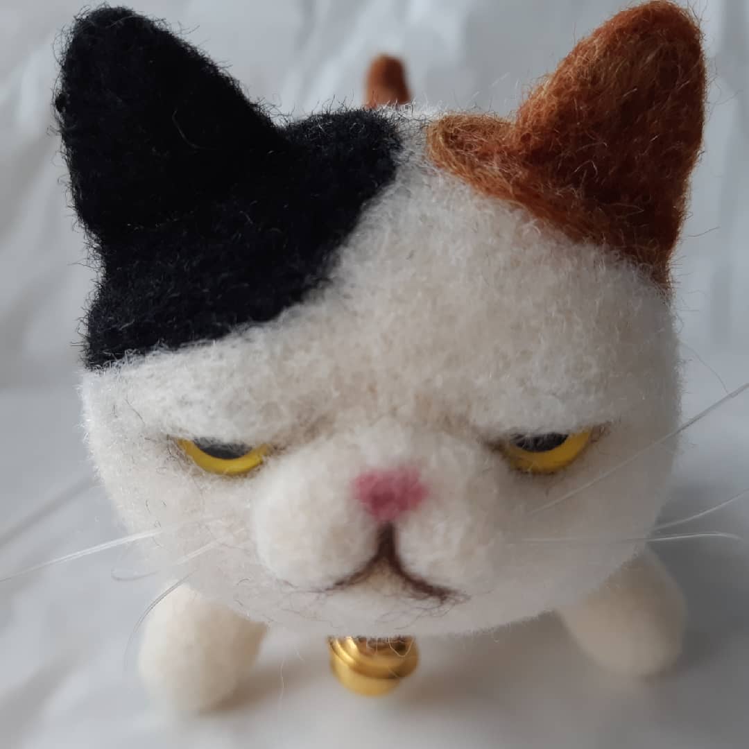 羊毛フェルトで作った、ちいさな三毛猫さんです。minneにて販売中です。 minne.com/items/32795438 #三毛猫 #ドールハウス #リカちゃん #ジオラマ #羊毛フェルト #dollhouse #miniature #cat #calico #needlefelted