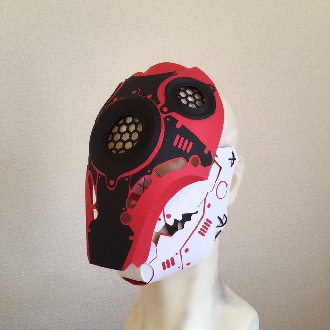 土曜日に入間市のコスプレ・イベント『入間の乱』で撮影してもらったベストショット。 赤い装備はペーパークラフトにスプレー塗装した物です。 Special thanks! Camera: @unmatchsan #入間の乱 #サイバーパンク #ペーパークラフト #cyberpunk #papercraft #cyberpunk武侠 #メカヘッド