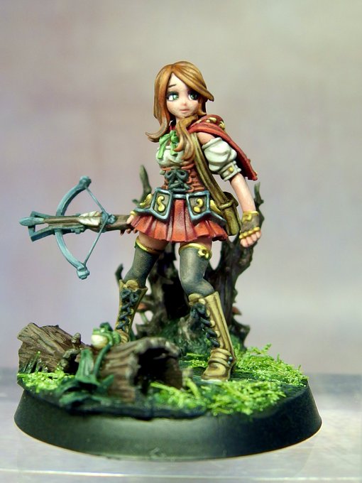 ULTRAZONE SOLDIER Class-female 完成。 Amidaさんとこの兵士セットのプチカスタムで、弓矢を追加装備してます。 主な用途はフロストグレイブの追跡者(トラッカー)・・武器がスタッフじゃないけどそこはまぁ気にしない気にしない。 #miniature #dnd #frostgrave