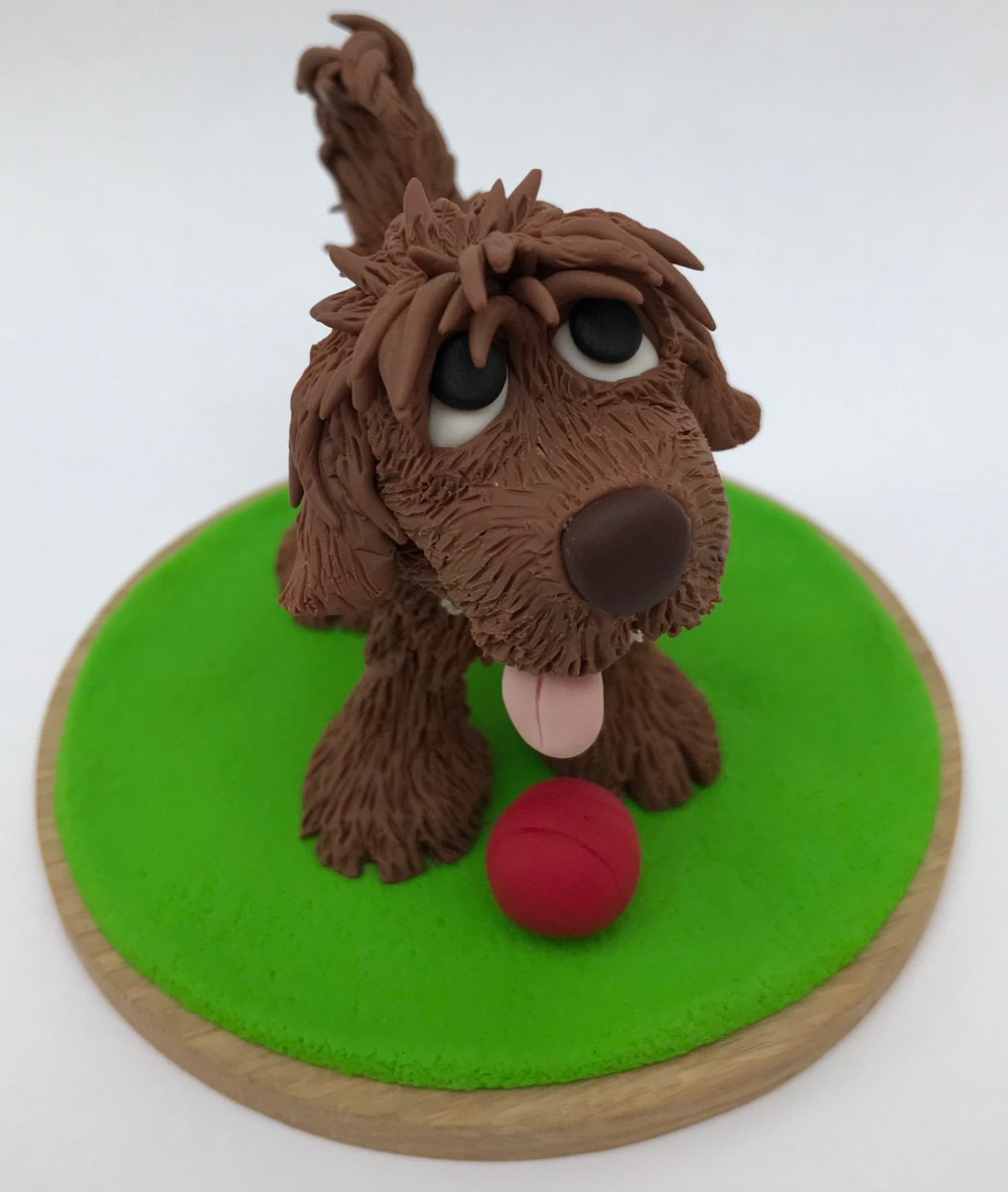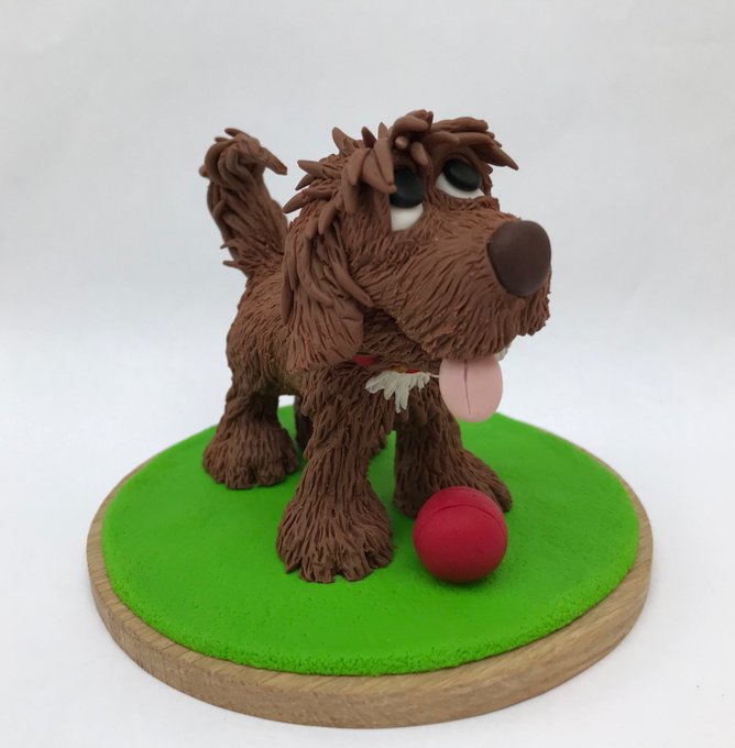 Gorgeous Rua the red Labrador checking out her mini 👀🐾 in the end Rua also had tiny daisy flowers added to match her pawrents wedding theme! #MHHSBD #petportraits #dog #handmade #polymerclay #artist