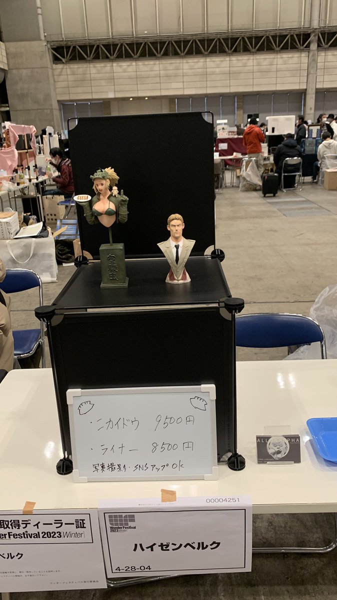 許諾いただきました!版元様ありがとうございます🙏 新作はドロヘドロから「カイマン」を販売します。 再販は悪魔ニカイドウと1/1ギョーザ男になります🥟 よろしくお願いします。 #wf2023s #dorohedoro #ドロヘドロ