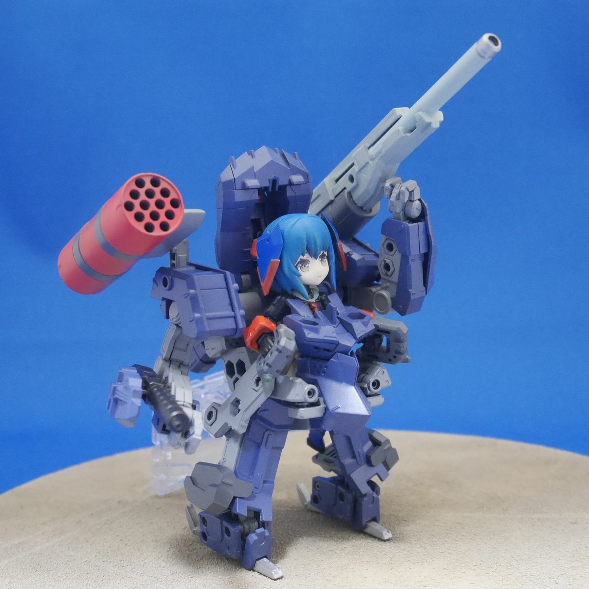 #デスクトップアーミー #DTA 青葉 湊&ソレイユユニット 完成 初のデスクトップアーミーの改造作品になります。 なかなかいい感じのネタが思いつかなかったのでTL上にあがっている作品を参考にして、今回は、相棒?のロボットに搭乗して戦うのをイメージした構成にしました。