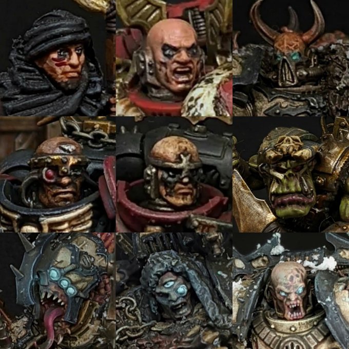 I don't know what this trend is but I like it. #faceyourart I've really tried to get better at painting faces this year, seeing a small collection on a grid is super cool 😁 #WarhammerCommunity #paintingwarhammer @WarComTeam