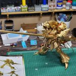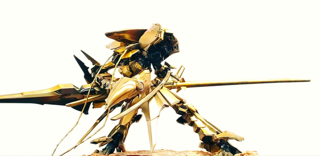 wave 1/144 ナイトオブゴールド完成〜! 本来は全部金色ですが、ちょっと遊んでみました😄 細かいガンプラの旧キット、みたいな感じでした! #FSS #wave #kog #ファイブスター物語 twitter.com/i/web/status/1…