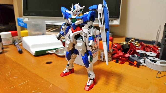 #ガンプラの画像を貼るとRTされると聞いて 5年くらい前に制作したダブルオーセブンソード。 今もそやけど、今と比べたら創りがめっさ粗すぎるなー思うね、( ゚ー゚)ウ ( 。_。)ン #gunpla #gunplaphoto #ガンプラ #MG #g_oo