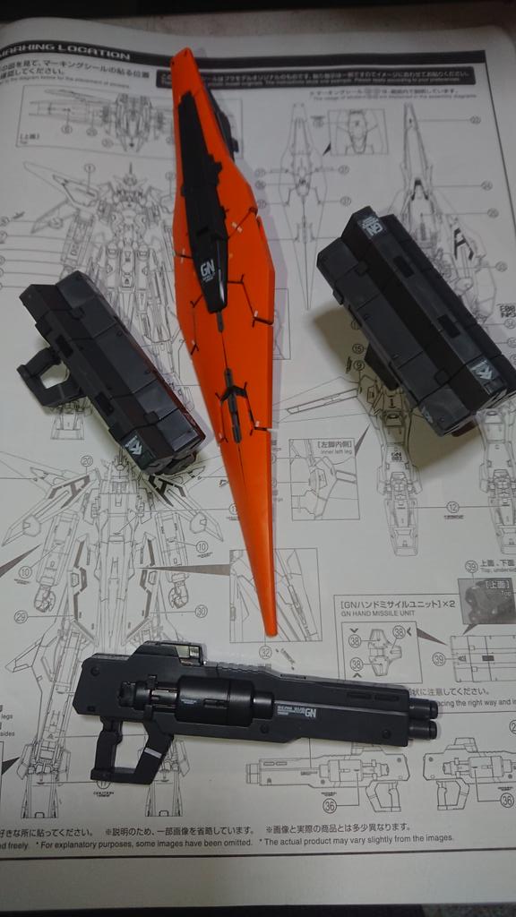 武器のマーキングも終わったー(^-^) 完成画像は明日にしまーす #ガンプラ #素組 #MG #g_OO #機動戦士ガンダムOO #ガンダムキュリオス #うちかつホビー #みんなでガンプラ #gunplatogether