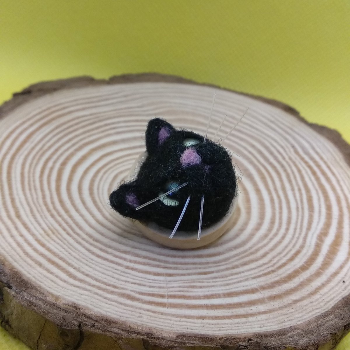 Este gatete de 22mm (aprox.) te mira allí donde vayas 🐱 Se avecina sorpresa! #gatos #catart #woolfelt #羊毛フェルト #ニードルフェルト #ハンドメイド #hechoamano #handmade #needlefelting #needlefelt