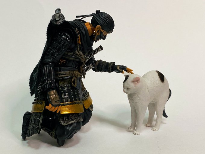 #夜のフィギュア撮影会 12/25 お題 『今月のベストオモ写』 ネタ写真系で気に入ってるやつ! (きれいめ写真は後日別タグで上げます。たぶん。) 4枚目の黒澤モードで猫に威嚇されてる冥人様が個人的にすごい気にいってるw #onepiece #ちいかわ #GhostOfTsushima