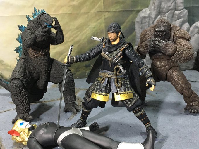 #おもちゃ撮影会 テーマ『ドン』 コングもドン引き!?お侍様の戦い方じゃない・・。 #figma #境井仁 #ゴーストオブツシマ #GhostOfTsushima #ゴジラVSコング #GodzillaVsKong #ゴジラ #Godzilla #コング #Kong #モンスターアーツ #モンスターアーツ写真部 #マグマ星人 #SHMonsterArts #オモ写