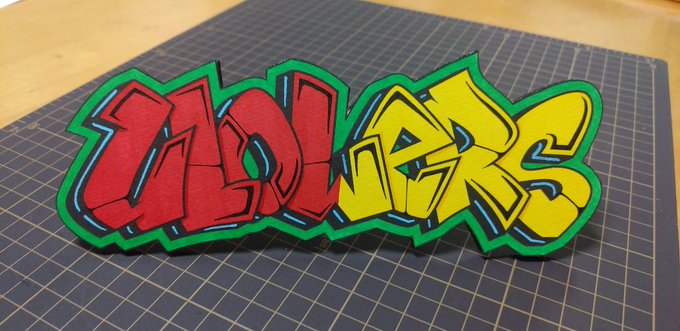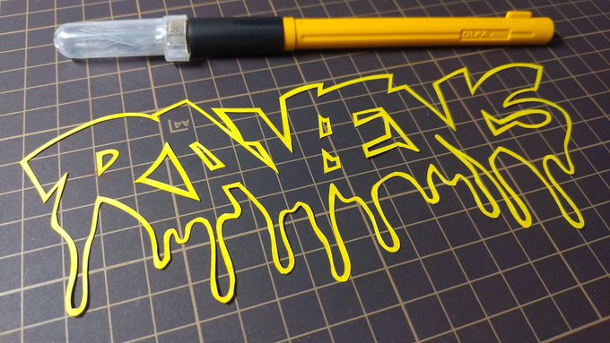 試行錯誤というか迷走中で、色々やってみてます。 黄色の紙が無かったので塗ってます。サブカラーで輪郭。 切り抜き大変😅 #graffiti #nfl #RavensFlock #グラフィティ #切り絵 #ペーパークラフト #アメフト #PB_Designs twitter.com/potatobasser…