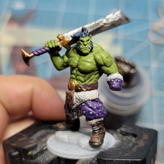 I have a half-orc barbarian for #hobbystreak day 201! He's almost done!!! #miniaturepainting #minipainting #dnd #dndminiatures #dndart #dndpainting #paintingminiatures #dungeonsanddragons #ttrpg #halforc #frameworks
