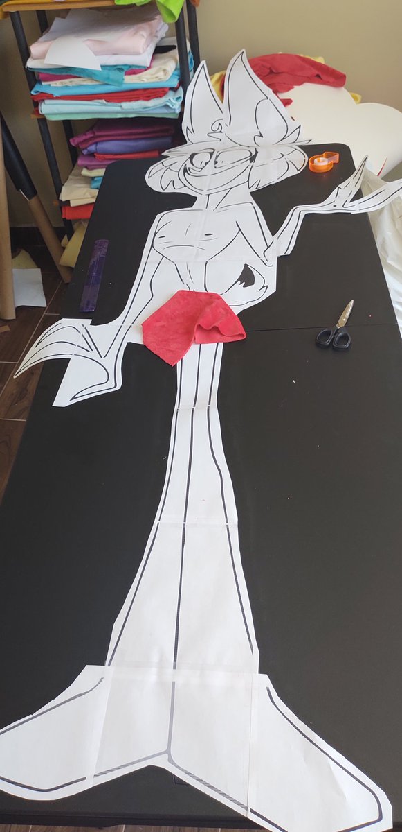 XD The feet were hanging in the first pic, added a red toga uwu for+ sepxyness 💕 2.10mtrs from feet to head+ ears💖 just base for start patterning #HazbinHotelFanart #HazbinHotelAlastor 💖