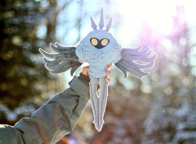 The Radiance is here! 😁 The FLUFF 🤍 She has no intention of hurting anyone, she is simply a super cuddly moth 🥰 She is available in our Etsy shop (made to order) 😊🤍 #hollowknight #hollowknightfanart #hollowknightart #hkfanart