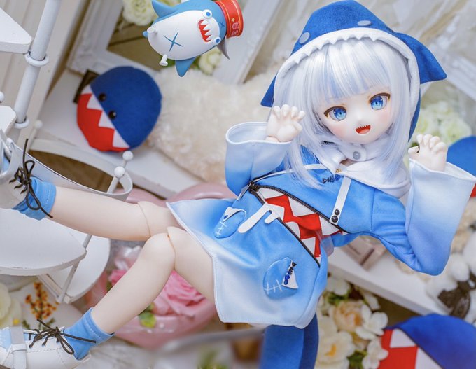 \どうも!サメです!!/ お洋服が届いたので正式にお披露目です!✨ 1/4サイズで がうる・ぐらちゃんのキャラドールを制作しました!🦈🔱 うちのぐらちゃんをよろしくお願いします💙 #gawrt #gawrgura #ドルフィードリーム #hololiveEnglish