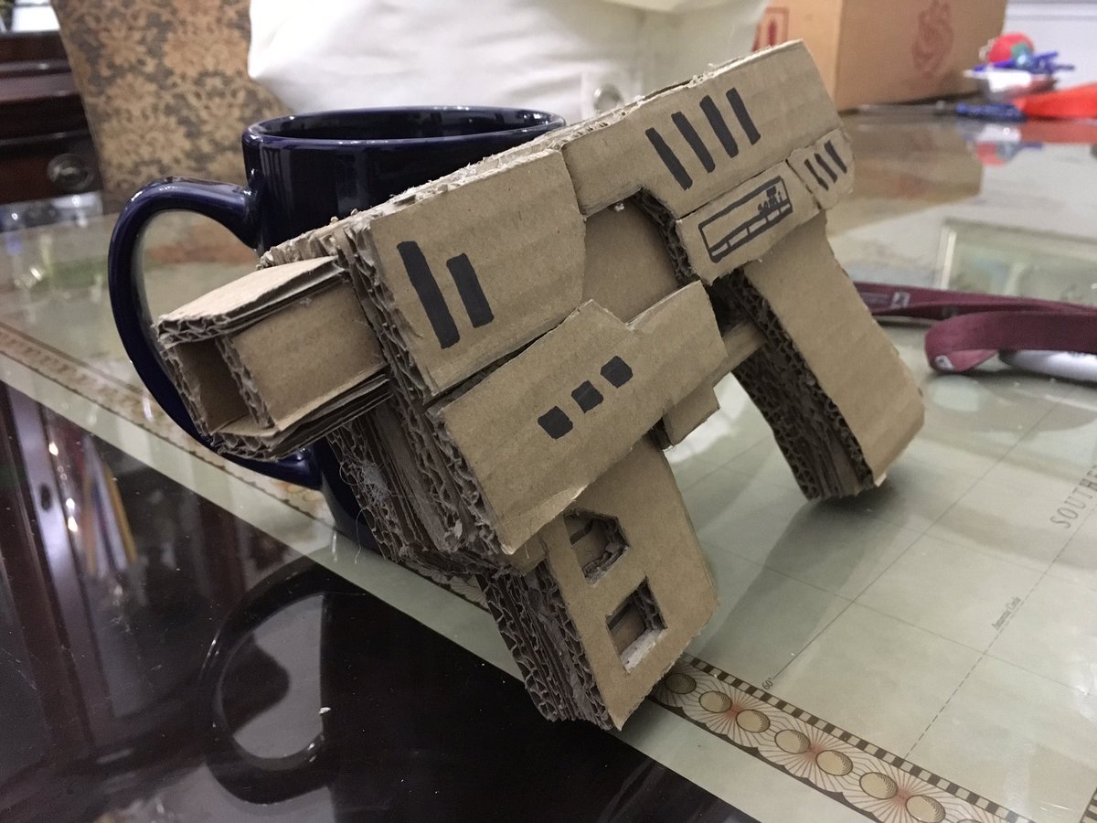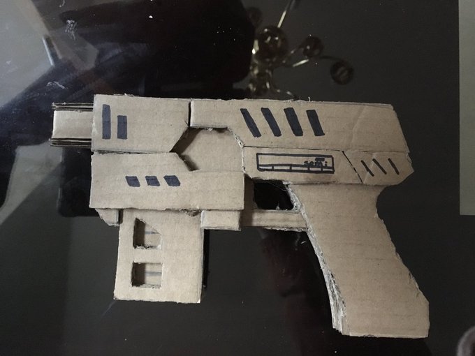 Okay, so I decided to make a piece that’s based off of one of my favorite movies #Dredd, the Lawgiver Mk. 2! It’s a bit rough around the edges, but it turned out alright. #Judgedredd #2000AD #comic #fanart #cardboard #cosplay #prop #crafts #art #artistsontwitter #movie