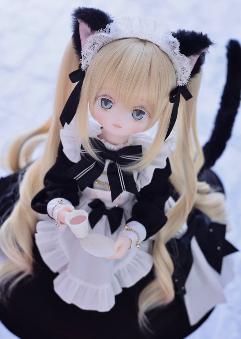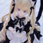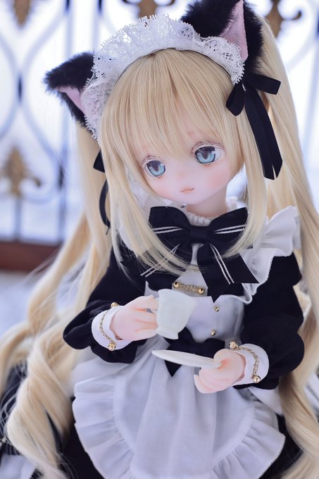 黒猫メイドなmisakoちゃん🐈⬛… CALULUさんのメイド服とFashionTailさんのカップ&ソーサー&ハンドが凄く合っていてとっても可愛い🥰感謝です🙏🏻✨ボディはMDDに載せています〜 #FashionTail #CALULU服 #puyoodoll #kumako #LullabyPoem