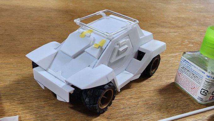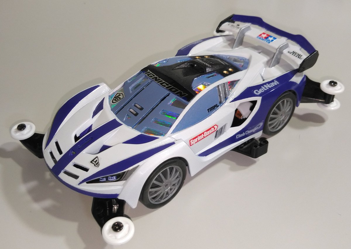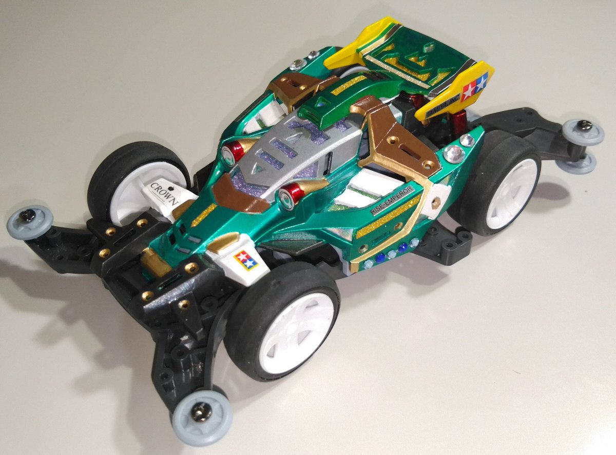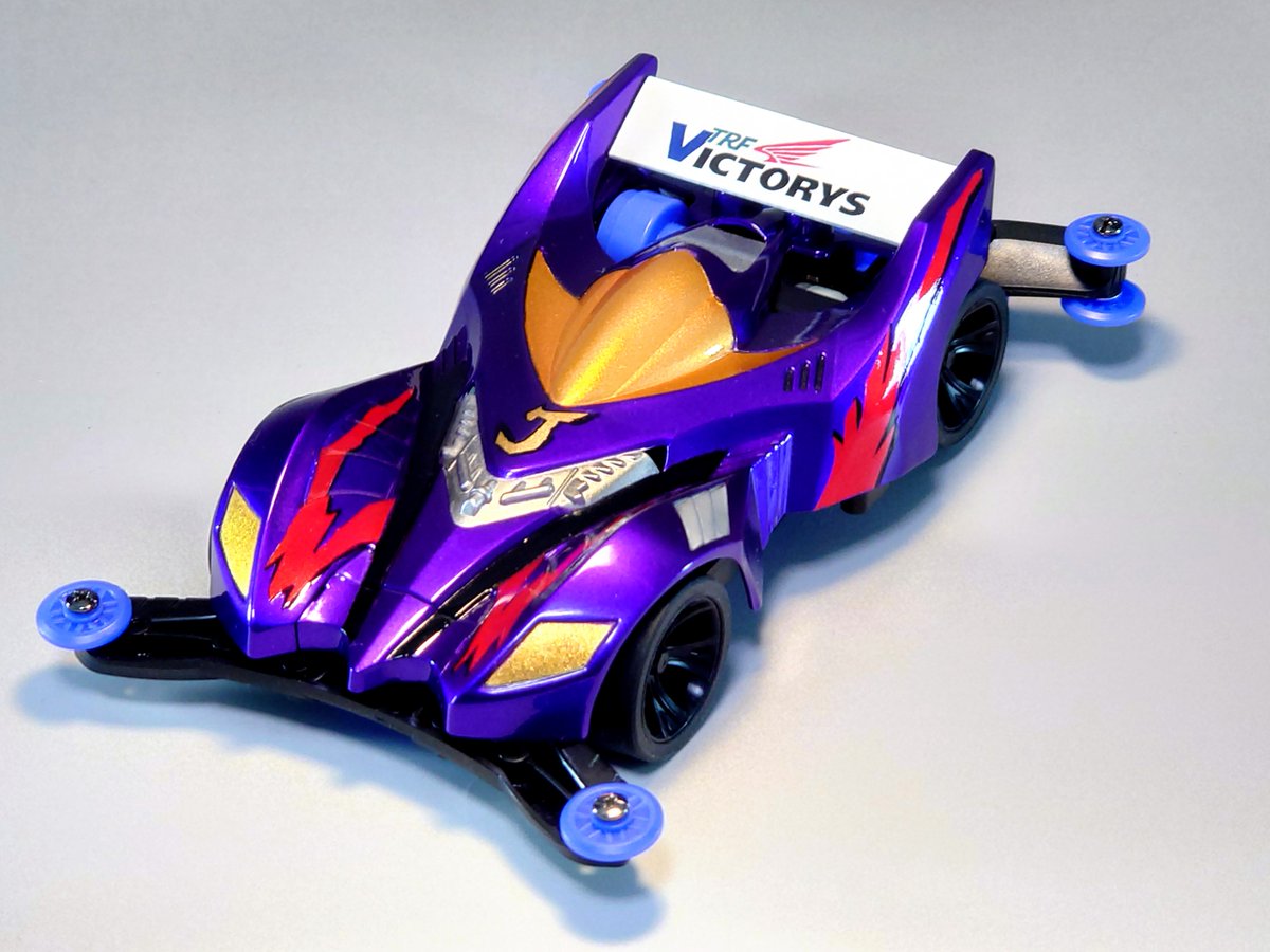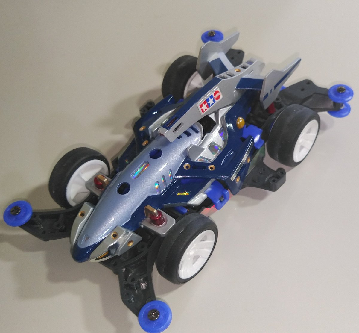 #個人的に今年1番頑張ったプラモデル見せてください どの作品も全力を出しているつもりなので、1番頑張ったという表現は違和感があるけれど。敢えて挙げればロードナイト。 レーザーパーツとミキシングしたカウルの調整にめっちゃ苦戦しました。 #mini4wd #ミニ四駆 #MINI4KING