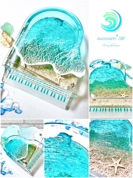 #ゴールデンウィークSNS展覧会2022 【新作】Music wave~グリーンオーシャン~ minne.com/items/32218450 爽やかなグリーンの海を一面に広げました🏝 『明るい希望』という願いを込めて制作しています🐬✨ 5月4日(水)21:30~ みどりの日にminneで販売します(❁ᴗ͈ˬᴗ͈))✨ #海レジン #minne_new