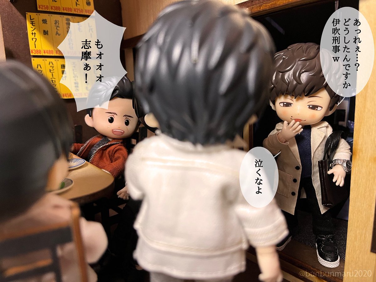 数年越しに2020年夏の404完成ー!これでゼロ地点に行きたい☺️ 車に乗ってて志摩の靴とかボトムスが不明なんだけどこれであってる? #MIU404 #miu404イラスト企画 #ねんどろいどカスタム