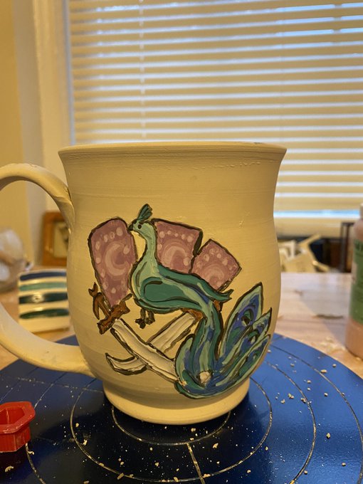 Mollymauk themed mug! This is unfired greenware…so still a ways to go before it’s finished. #ceramics #CriticalRole #criticalrolefanart #CriticalRoleArt #mollymauk #mollymauktealeaf