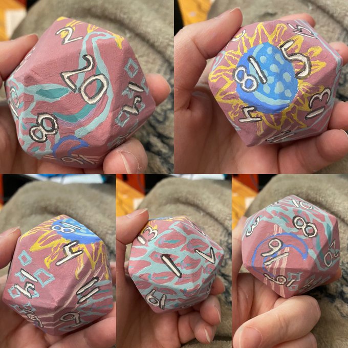 Two more giant porcelain d20s. One inspired by Mollymauk’s coat, the other is Kinkaku-ji! #ceramicdice #porcelaindice #mollymauk #criticalrolefanart #kinkaku-ji