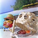 #夜のフィギュア撮影会 4/1 お題 『嘘』 ルフィ「10人分の昼飯が消えた?おれは何も知らねーぞ。げっぷ。」 サンジ「一目でバレる嘘をつくな!!!」 #onepiece #monkeydluffy #sanji #WCF