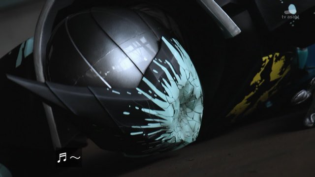 エビル、目が潤んでるように見えるって言ってた人いたけど、マスク割れでよりそれが目立つ形になって弱くなった負の感情が最後に溢れだしてる様に見えるのがまた……。 #nitiasa #仮面ライダーリバイス