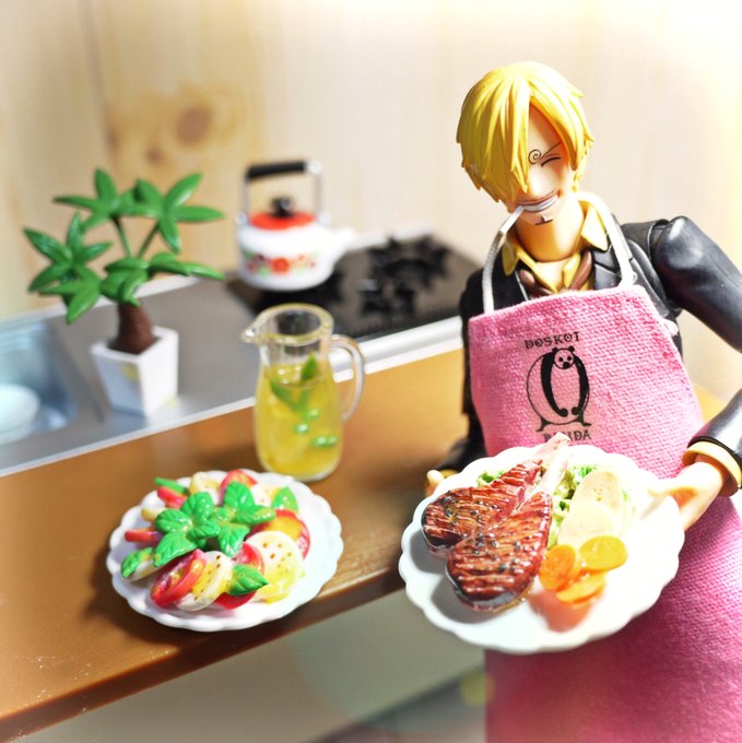#夜のフィギュア撮影会 7/18 お題『変化』 変化どころの騒ぎじゃない。 #onepiece #サンジ #ゼフ #パティ #WCF #ガチャガチャ #カプセルトイ #箱買いペットボトル #システムキッチンマスコット