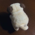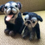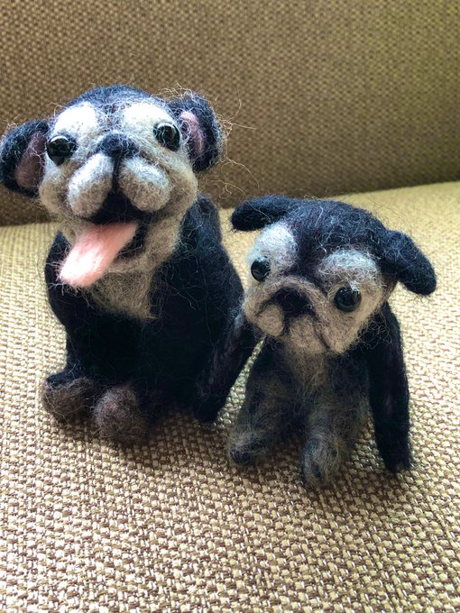 パグ犬らんちゃん、お空組🌈 このお顔で作って欲しいと拝見したお写真はパピーに近い感じがしました。 でも、シワはしっかりと見て取れたのでごつごつの額✨ #pug #パグ #moncome #feltartmoncome #needlefelting #羊毛フェルト #ニードルフェルト