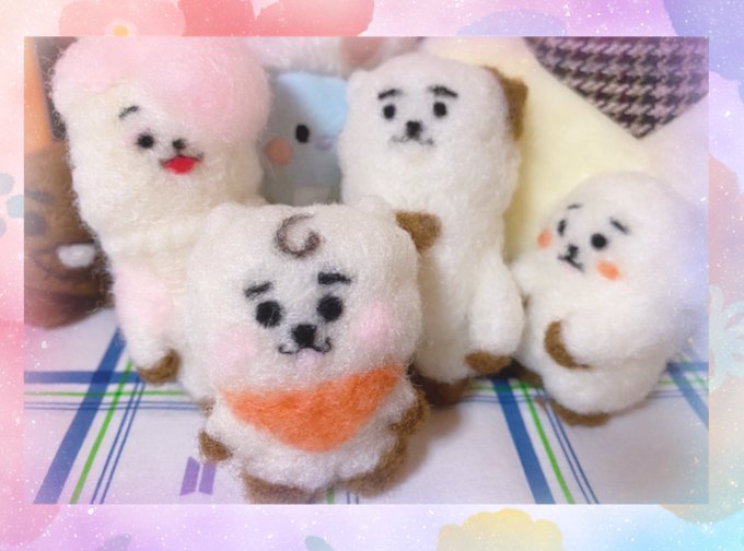 今回作ったmininiシリーズと 以前に作ったparty nightシリーズ どちらがお好みですか?😆💕 私はシリーズの最初に作った party nightのKOYAに一番思いい入れがあるかな🥰❤️ #BT21minini #BT21partynight #KOYA #RJ #SHOOKY #MANG #CHIMMY #TATA #COOKY #btsarmy #btsfanart #羊毛フェルト