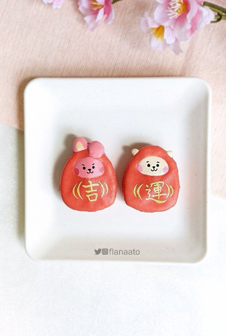 🐯🍊 𝙍𝙅 & 𝘾𝙤𝙤𝙠𝙮 𝘿𝙖𝙧𝙪𝙢𝙖 𝙈𝙖𝙘𝙖𝙧𝙤𝙣𝙨 Happy LNY! 🧧 Wishing all a Year of the Tiger roaring with prosperity and joy! 😊 🦙🐰 #RJ #COOKY #BT21 #BT21baby #BT21fanart #BTSbake #BT21bake #BT21cookies @BT21_ @BT21_Japan @BTSARMYKitchen @BTS_twt #LunarNewYear #HNY