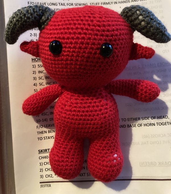 Getting closer to finishing this doll between orders 😊 #crochet #CriticalRole #rubyofthesea #jesterlavorre #criticalrolefanart #mattmercer #jester #mightynein #dnd #dungeonsanddragons #laurabailey #marionlavorre