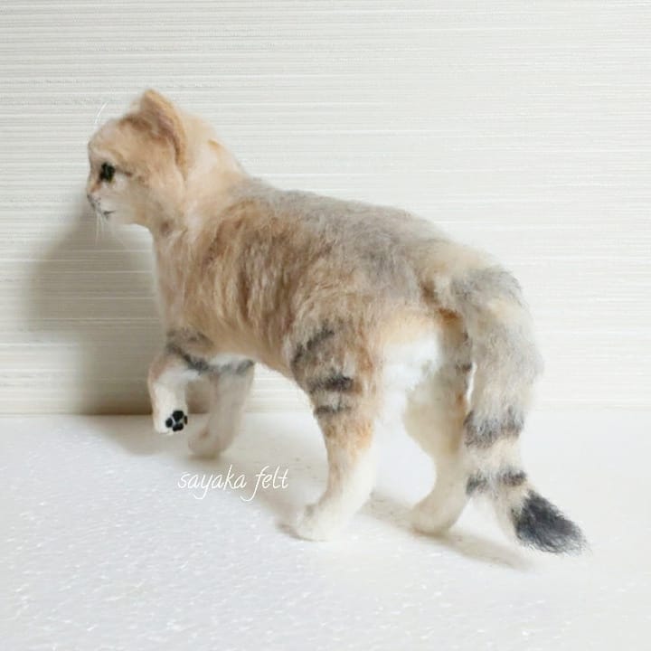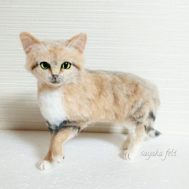 顔はちょっと失敗したものの ボディはそこそこ植毛できたと思ってます(自画自賛) スナネコっぽいネコ科の何かw #羊毛フェルト #needlefelt #スナネコ なのか?! #sandcat #Felismargarita