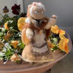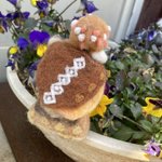 ケープができたよ!このケープ服が見えてオシャレで凄く良いね(● ˃̶͈̀ロ˂̶͈́)੭ꠥ⁾⁾ しなしなだけど、パンジーと共に撮ってみたよ!カワチィ💕 #sky星を紡ぐ子どもたち #羊毛フェルト #星の子