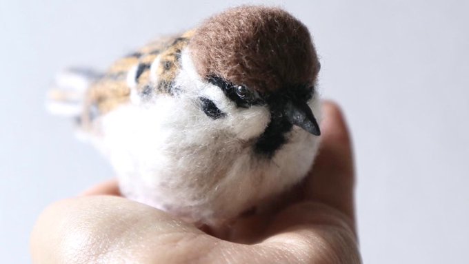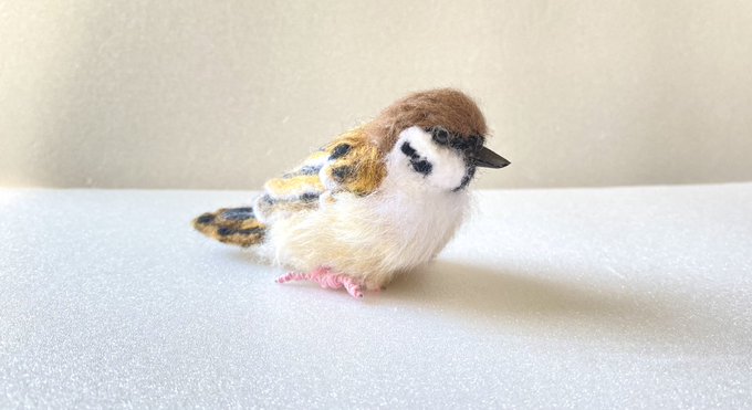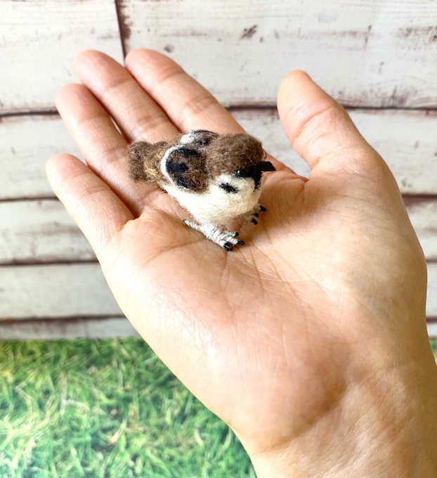 小さなスズメさんできました♡ ニードルで制作…φ(..) 思っているより大きくできてしまったなぁ💦 後ろ姿もぜひ見てネ◝(•ө•)◜ 厳選したフェルトをブレンドし 一針一針刺して色を表現しています #スズメ #ニードルフェルト #羊毛フェルト #miniature #ミニチュア #needlefelting #sparrow