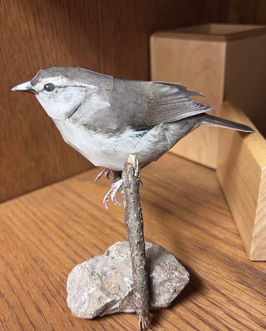 ダレンさんから、彼が組み立てたウグイスとスズメのペーパークラフトの写真をいただきました! 彼の作品は何度見ても本当に素晴らしいです!😆✨ #papercraft #紙鳥屋 #bushwarbler #sparrow #ペーパークラフト #ウグイス #スズメ